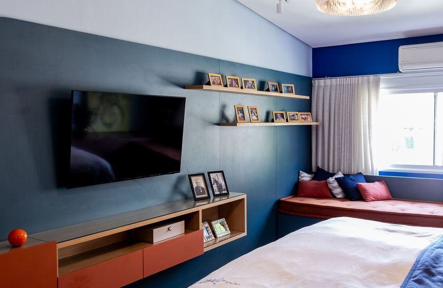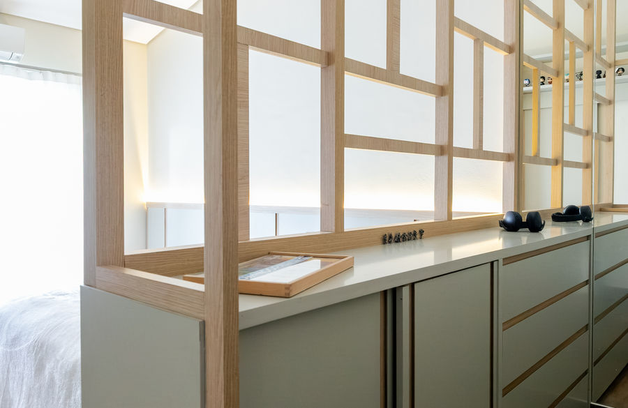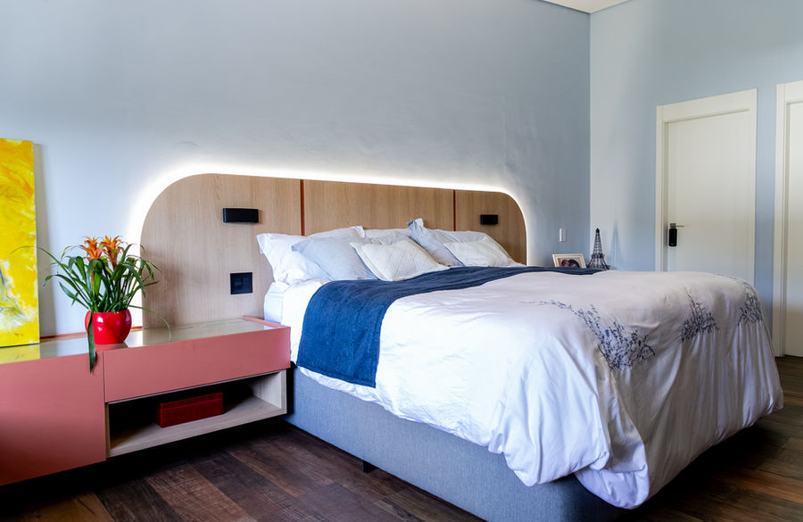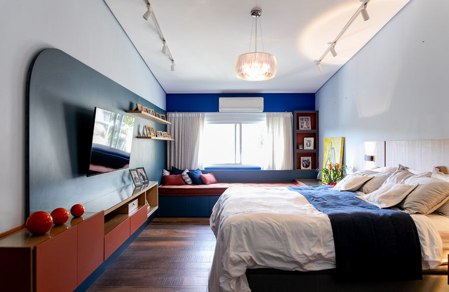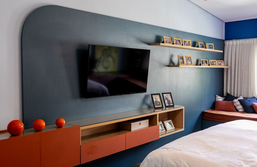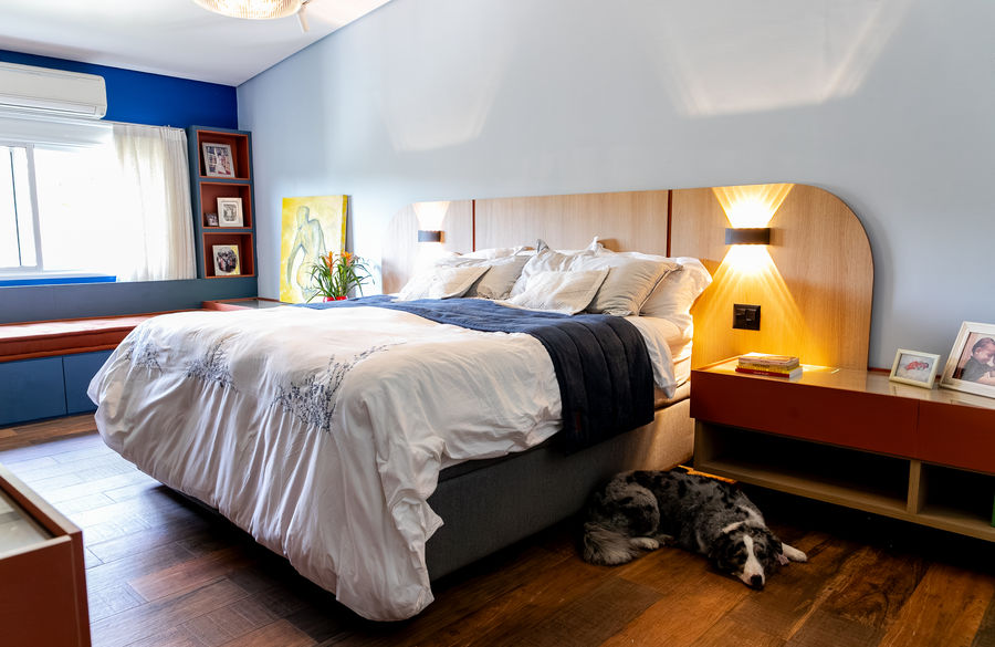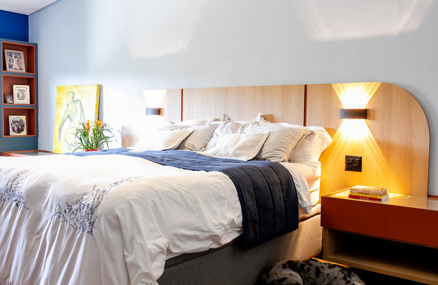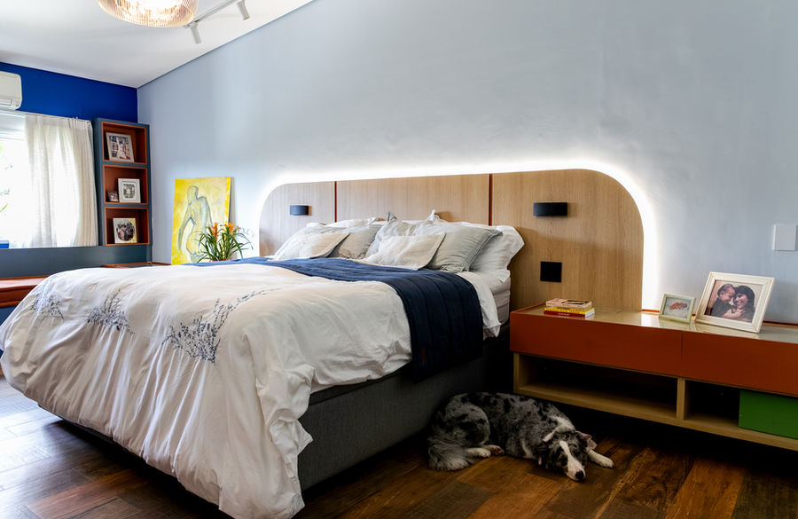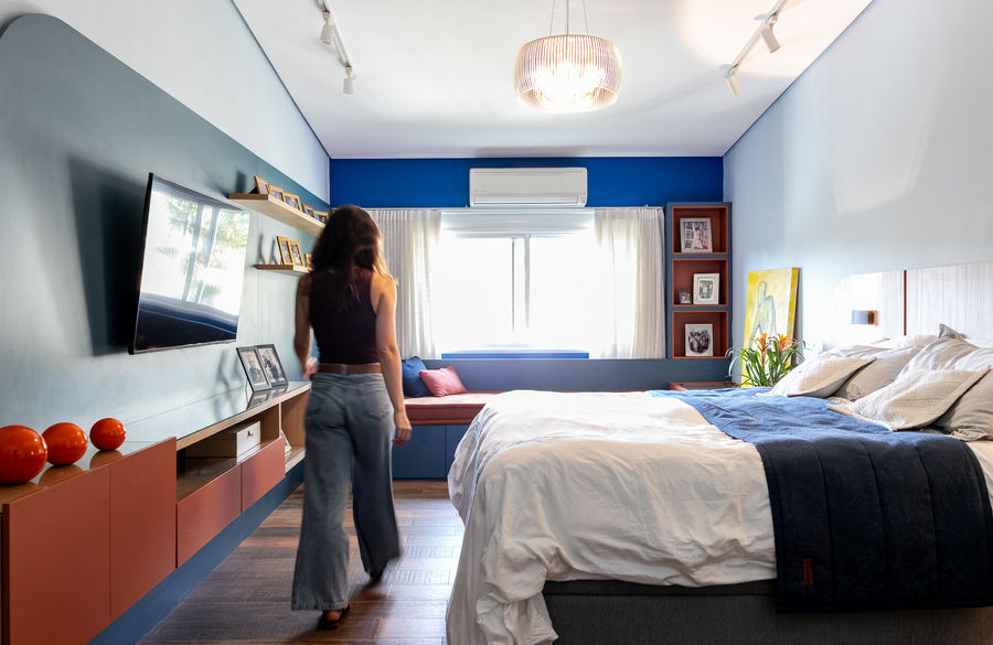 Com um perfil eclético, os clientes buscavam que cada ambiente tivesse sua própria identidade. A suíte master recebeu uma abordagem contemporânea e acolhedora, com destaque para tons de azul, enquanto a primeira suíte segue o estilo japandi, priorizando equilíbrio, simplicidade e conforto. Já a segunda suíte aposta em uma estética neutra e elegante, inspirada no estilo faria limer.